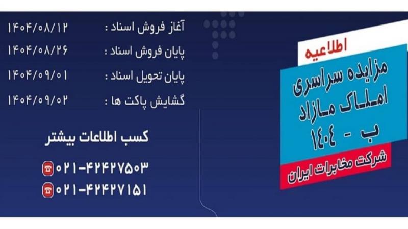 مزایده سراسری املاک مازاد شرکت مخابرات ایران برگزار می شود شرکت مدیریت سامان سازه غدیر به نمایندگی از شرکت مخابرات ایران در نظر دارد نسبت به فروش تعدادی از املاک مازاد مخابرات در قالب مزایده سراسری ب -1404 اقدام کند. به گزارش معاونت ارتباطات و روابط عمومی شرکت مخابرات ایران، بخشی از اموال غیرمنقول شرکت در تهران و سایر استان ها (مناطق مخابراتی بر اساس لیست مشخصات املاک به تفکیک محل های وقوع آن ها) به فروش می رسد. بر این اساس، مزایده ب- 1404 با هدف تامین نقدینگی برای بروزرسانی و نوسازی طرح های شبکه و اجرای پروژه های ملی FTTh و همچنین تهاتر با مطالبات پیمانکاران طرف قرارداد شرکت مخابرات ایران در سراسر کشور به صورت عمومی و طبق مصوبه هیات مدیره برگزار می شود. همچنین، با توجه به برنامه ریزی صورت گرفته در خصوص آغاز فرآیند برگزاری مزایده، روز دوشنبه 12 آبان ماه شروع فروش اسناد و دوشنبه 26 آبان ماه پایان فروش اسناد خواهد بود، روز شنبه 1404/09/01 پایان تحویل اسناد و یکشنبه 1404/09/02 گشایش پاکت ها انجام می شود. گفتنی ست، پیش آگهی مزایده فوق الذکر در تاریخ 10 آبان ماه در روزنامه دنیای اقتصاد منتشر و جزییات آگهی نیز در تاریخ 12 آبان ماه در روزنامه دنیای اقتصاد منتشر خواهد شد. مشتریان املاک و ذی نفعان مزایده، میتوانند برای کسب اطلاعات بیشتر با شماره تلفن های ۴۲۴۲۷۵۰۳-۰۲۱ و ۴۲۴۲۷۱۵۱-۰۲۱ شرکت مخابرات ایران تماس حاصل کنند.